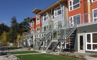 KZA continues on its quest to artfully pack people into denser dwellings, first in their Latitude 60 Loft Condos, built in 2003, and the following year in New Cambodia, a 12-unit townhouse-commercial mix that sold like concert tickets. (The name refers to an infamous Whitehorse party house that once occupied the lot, dubbed Cambodia because a tenant had painted one of the rooms in a camouflage hue.) Former Copper Ridge resident Patricia Daws gushes about her unit. “My house is full of nice angles and there are no dark spaces,” she says. “It’s so secure, too, because there’s businesses there during the day.” The complex includes four ground-floor commercial units, one of them a Yoga studio owned by Zedda’s fiancé, Juliette Anglehart.